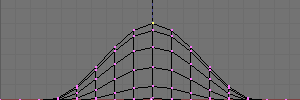 Change the curve profile used by either using the Mesh>>Proportional Falloff submenu, using the toolbar icon Figure 7.34, “Falloff Menu.” or by pressing SHIFT-O to toggle between the options Constant, Linear, Sharp, Root, Sphere and Smooth. (Figure 7.35, “Constant - No Falloff.” Figure 7.36, “Linear Falloff.” Figure 7.37, “Sharp Falloff.” Figure 7.38, “Root Falloff.” Figure 7.39, “Sphere Falloff.” Figure 7.40, “Smooth Falloff.”)