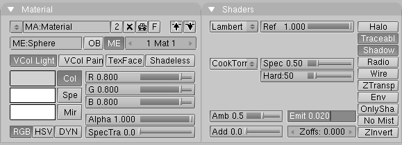 Now that we have created our dome, we need a new material. When you create the material for the dome change the following settings in the MaterialButtons (F5):